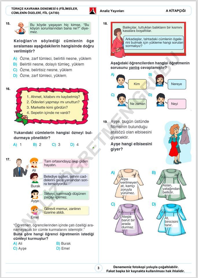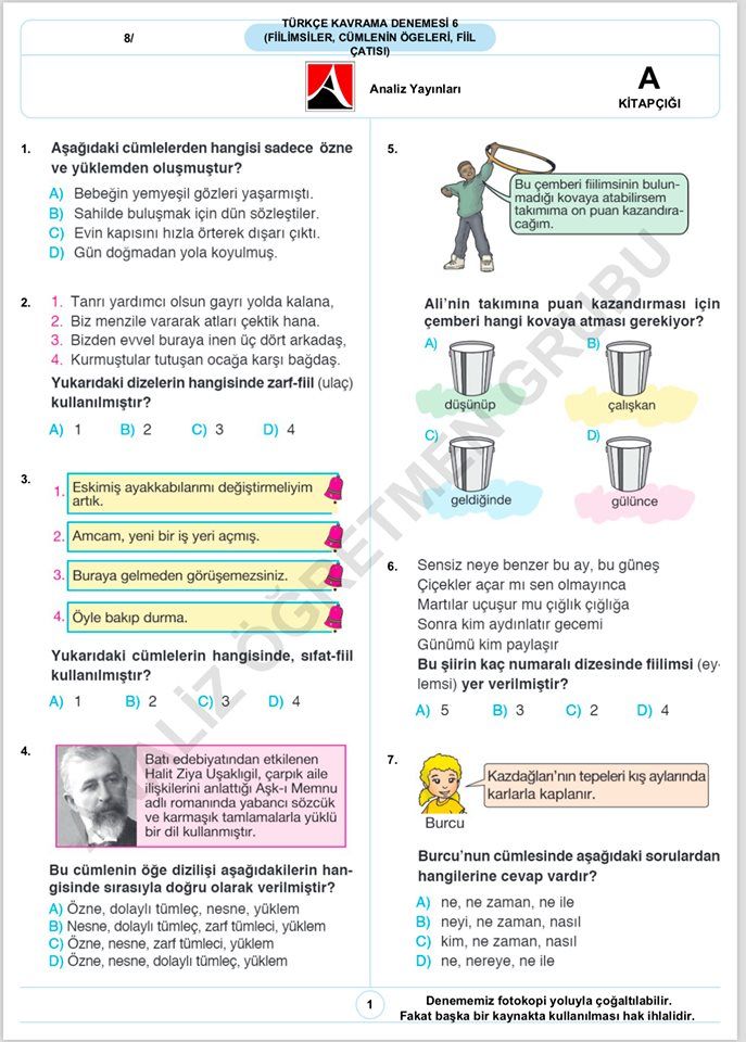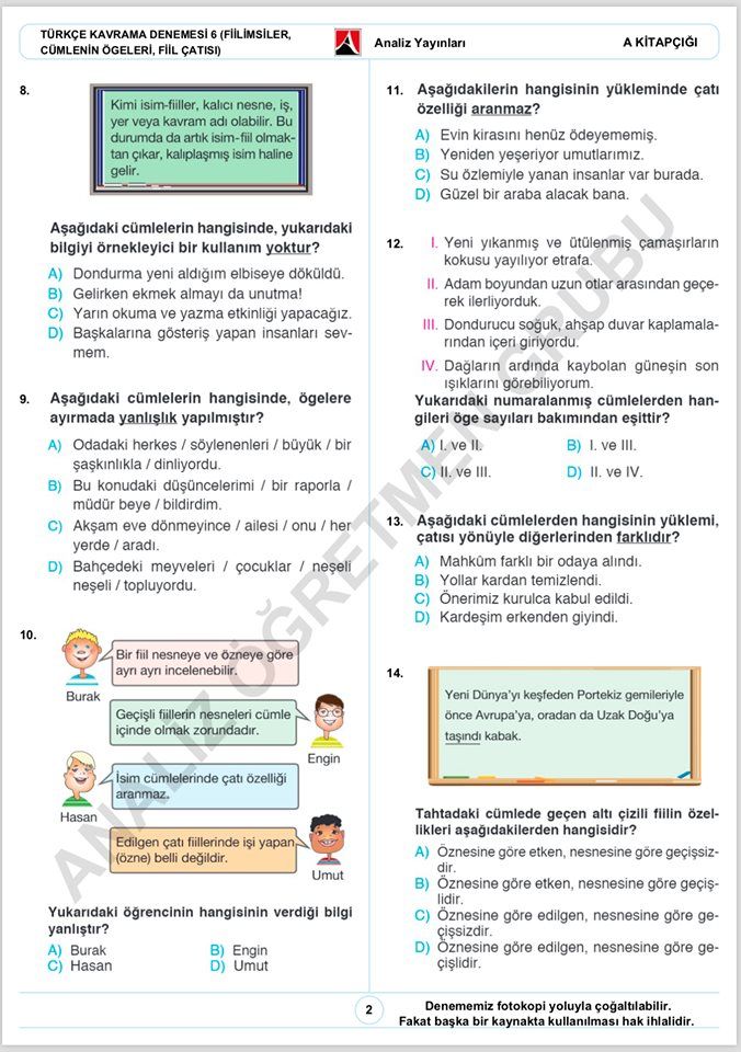 Fiilimsiler, Cümlenin Öğeleri ve Fiil Çatısı konularını içermektedir. Yayın hakkı veren Analiz Öğretmen‘e teşekkürlerimizi sunuyoruz.